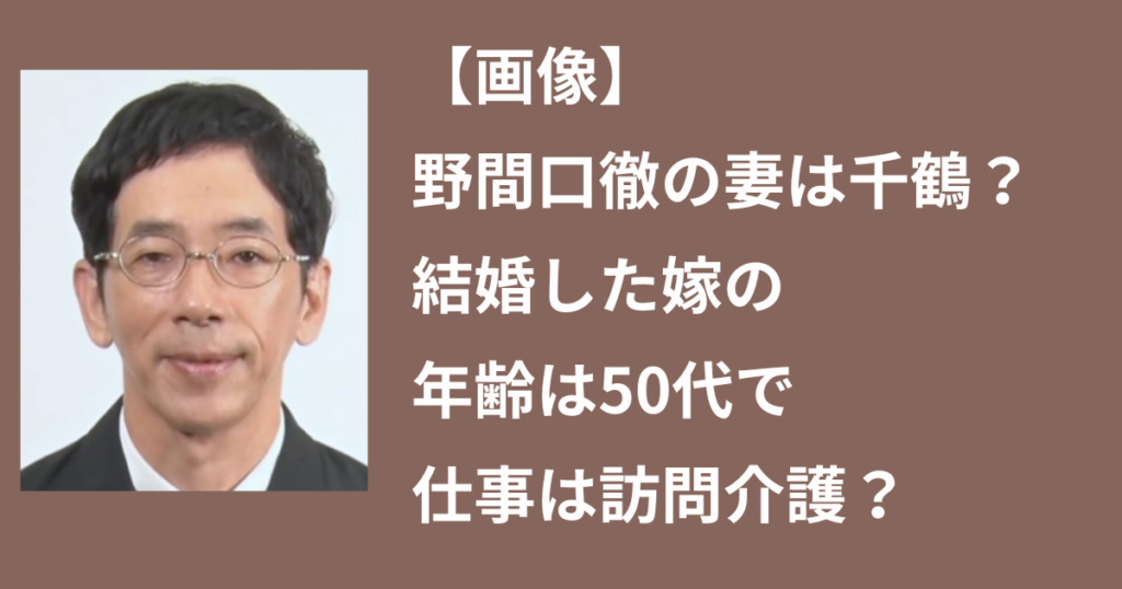 【画像】野間口徹の妻は千鶴?結婚した嫁の年齢は50代で仕事は訪問介護?
