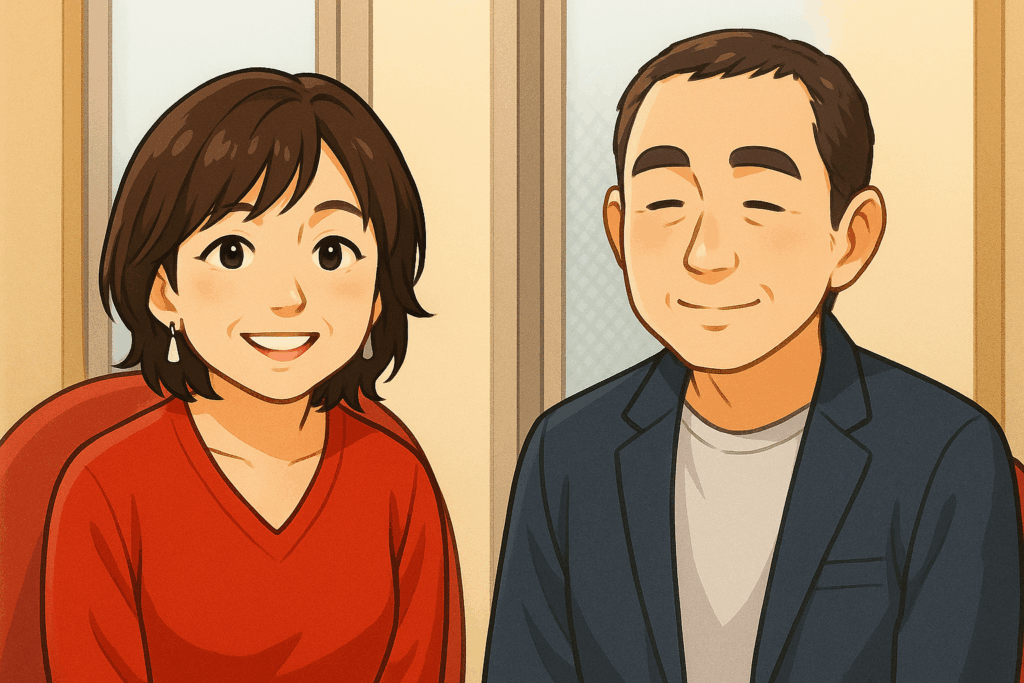 ※この画像は清水ミチコさんと夫・坂田幸臣さんをイメージして作成したイラストです。実在の人物・写真とは関係ありません。
