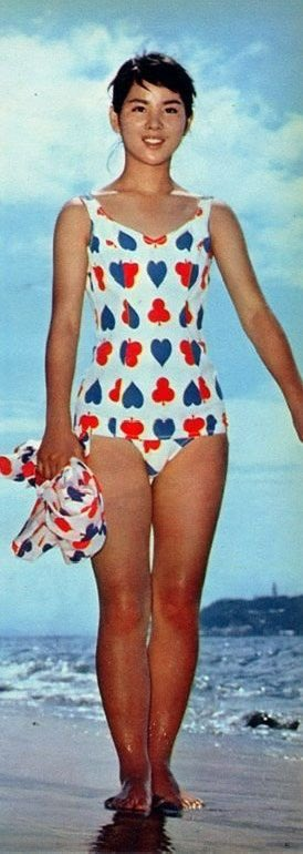 当時の水着も、今のように露出が多いデザインではありませんが、その分、自然体の美しさが際立っています。
